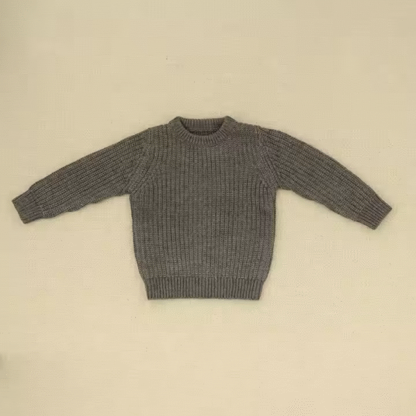 Hot Sale Custom Winter Knitted Jumper for Grey Knit Oversized Pullover Woven Baby Sweater for Kids