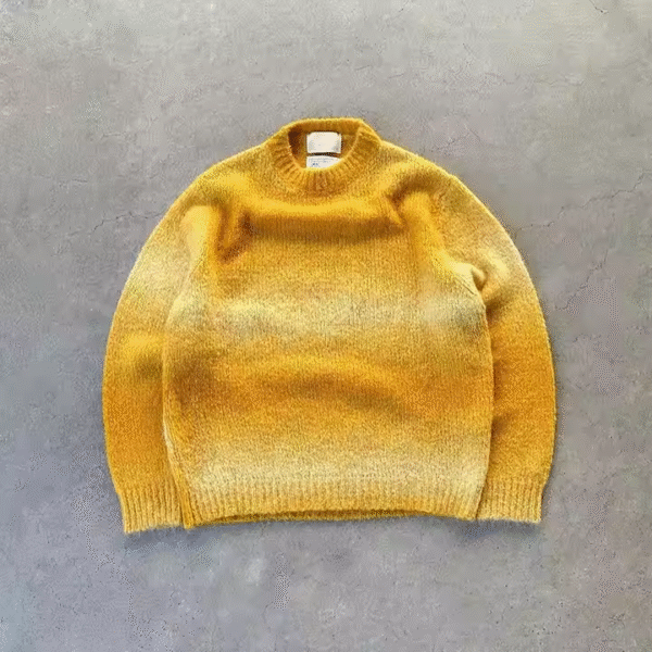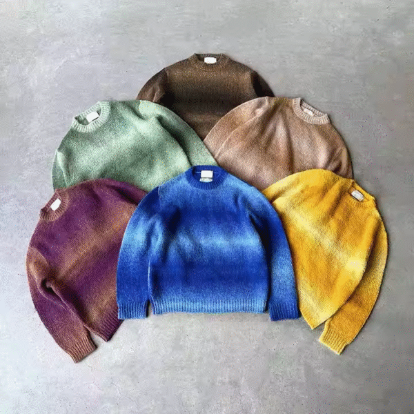 Custom OEM Crew Neck Sweater Long Sleeve Striped Sweater Men Gradient Knitted Pullover Jacquard Knitwear Men Mohair Sweater