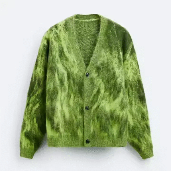 Custom Manufacturer High Quality Mohair Soft Knitted Mens Green Jacquard Sweaters
