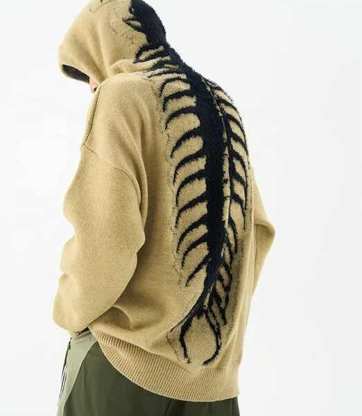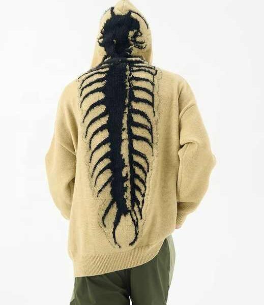 Custom Men's Long Sleeve Loose Cable Knit Hooded Pullover Winter Lined Jacquard Knitwear Cute Woven Sweater