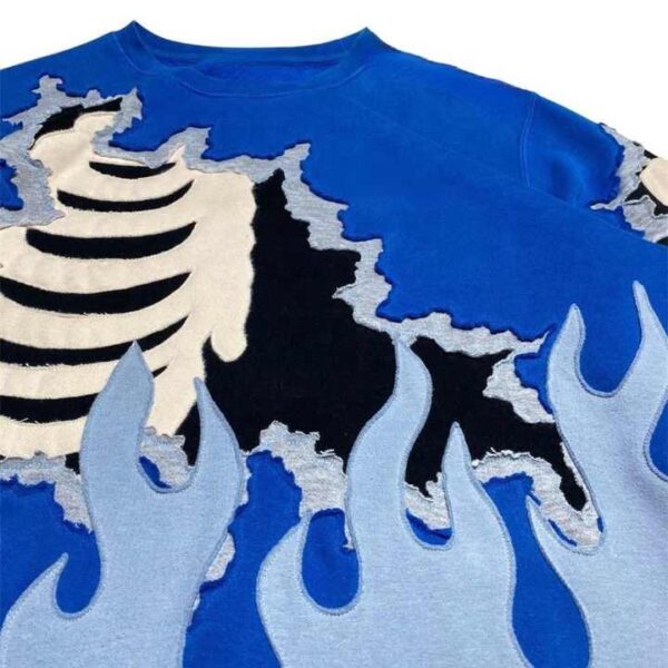 Custom Street Wear Applique Patchwork Embroidery No Hood Sweatshirts 100% Cotton Distressed Embroidered Patch Sweatshirts