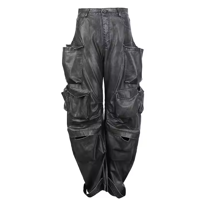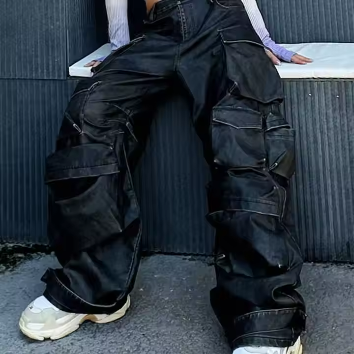 New Fashion High Street Denim Hip Hop Style Jumpsuit Set for Women Men Stonewashed Patchwork Cargo Jeans Wide Leg Pants