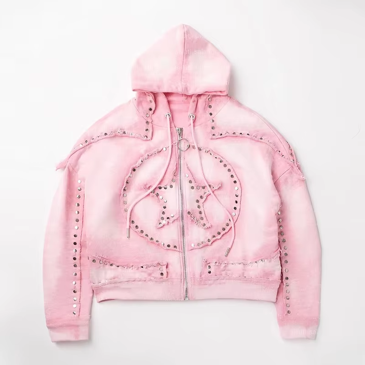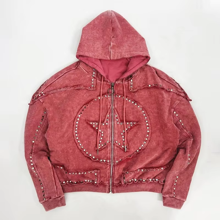 Wholesale Custom Heavyweight Cotton Zip-up Distressed Acid Wash Hoodie for Men Sun Hooded Spring Anti-Wrinkle Yarn Dyed